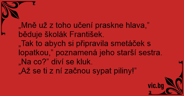 „Mně už z toho učení praskne hlava,” běduje školák František.
