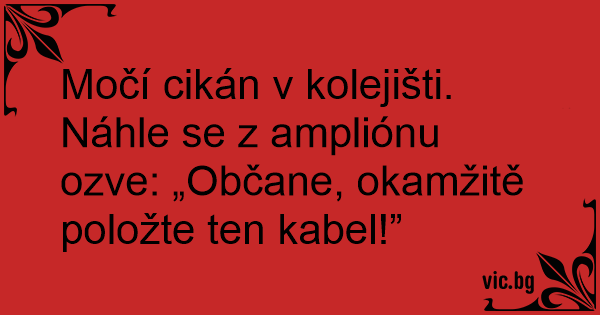 Močí cikán v kolejišti. Náhle se z ampliónu ozve: „Občane, okamžitě položte ten kabel!”