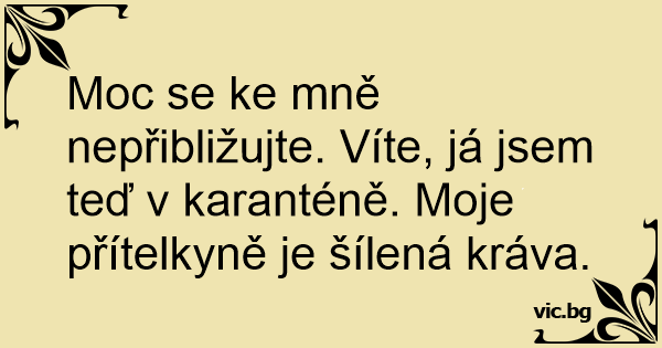 Moc se ke mně nepřibližujte. Víte, já jsem teď v karanténě. Moje přítelkyně je šílená kráva.