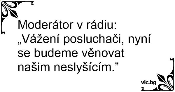 Moderátor v rádiu: „Vážení posluchači, nyní se budeme věnovat našim neslyšícím.”