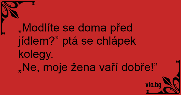 „Modlíte se doma před jídlem?” ptá se chlápek kolegy.