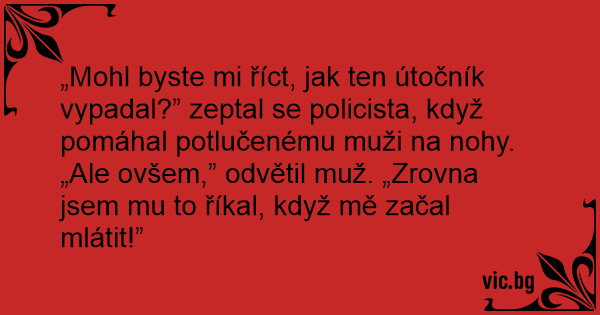„Ale ovšem,” odvětil muž. „Zrovna jsem mu to říkal, když mě začal mlátit!”