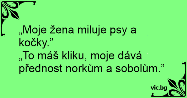 „Moje žena miluje psy a kočky.”