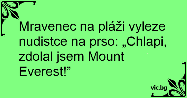Mravenec na pláži vyleze nudistce na prso: „Chlapi, zdolal jsem Mount Everest!”