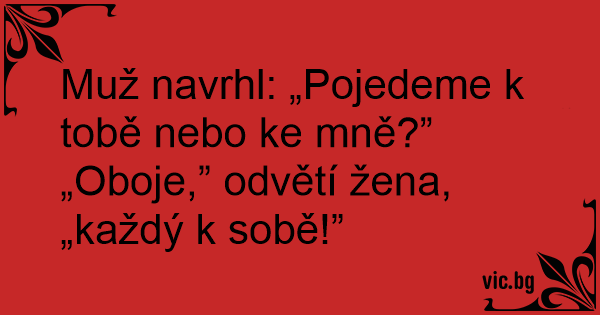 Muž navrhl: „Pojedeme k tobě nebo ke mně?”