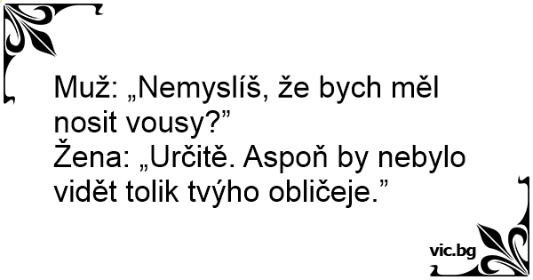 Žena: „Určitě. Aspoň by nebylo vidět tolik tvýho obličeje.”