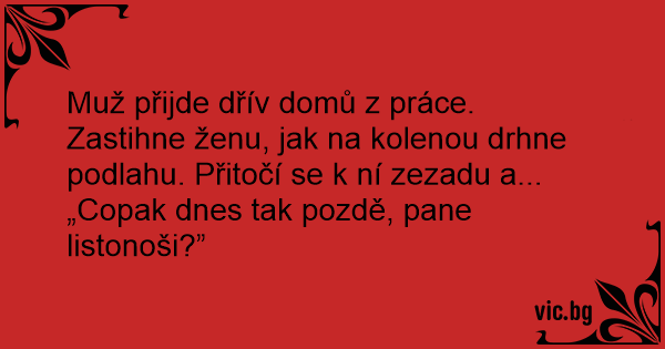 Muž přijde dřív domů z práce. Zastihne ženu, jak na kolenou drhne podlahu. Přitočí se k ní zezadu a...