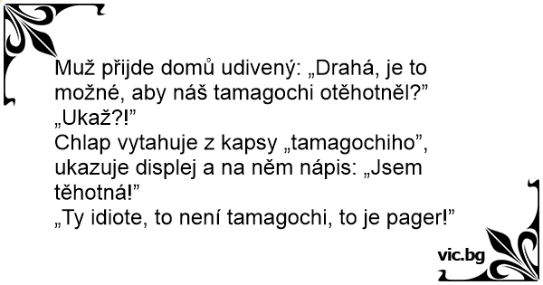 Muž přijde domů udivený: „Drahá, je to možné, aby náš tamagochi otěhotněl?”