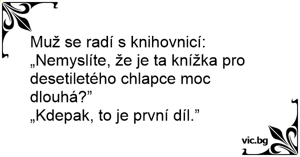 Muž se radí s knihovnicí: „Nemyslíte, že je ta knížka pro desetiletého chlapce moc dlouhá?”