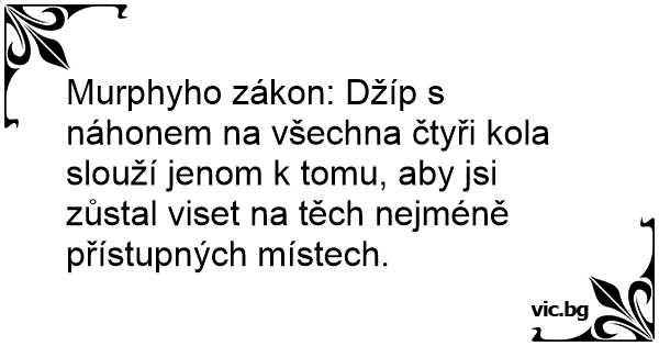 Murphyho zákon: Džíp s náhonem na všechna čtyři kola slouží jenom k tomu, aby jsi zůstal viset na těch nejméně přístupných místech.