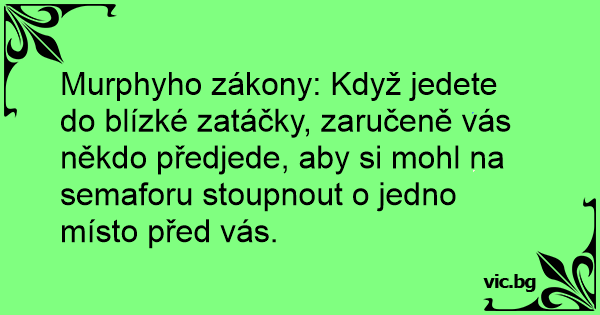 Murphyho zákony: Když jedete do blízké zatáčky, zaručeně vás někdo předjede, aby si mohl na semaforu stoupnout o jedno místo před vás.