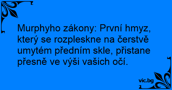 Murphyho zákony: První hmyz, který se rozpleskne na čerstvě umytém předním skle, přistane přesně ve výši vašich očí.