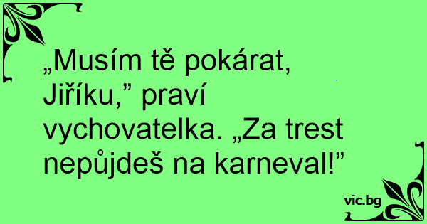 „Musím tě pokárat, Jiříku,” praví vychovatelka. „Za trest nepůjdeš na karneval!”