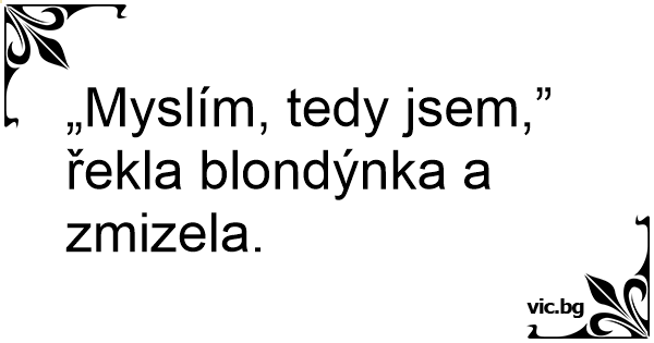 „Myslím, tedy jsem,” řekla blondýnka a zmizela.