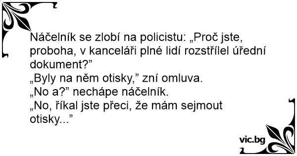 Náčelník se zlobí na policistu: „Proč jste, proboha, v kanceláři plné lidí rozstřílel úřední dokument?”