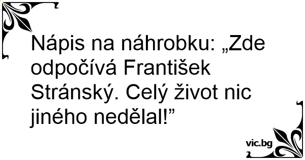 Nápis na náhrobku: „Zde odpočívá František Stránský. Celý život nic jiného nedělal!”