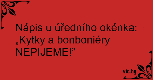 Nápis u úředního okénka: „Kytky a bonboniéry NEPIJEME!”