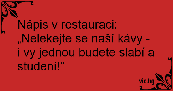 Nápis v restauraci: „Nelekejte se naší kávy - i vy jednou budete slabí a studení!”