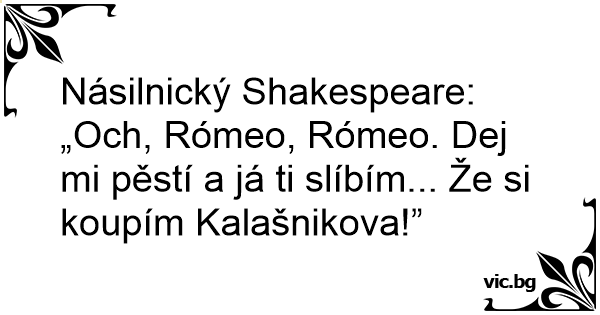 Násilnický Shakespeare: „Och, Rómeo, Rómeo. Dej mi pěstí a já ti slíbím... Že si koupím Kalašnikova!”