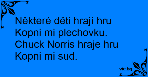 Některé děti hrají hru Kopni mi plechovku. Chuck Norris hraje hru Kopni mi sud.