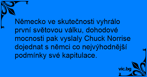 Německo ve skutečnosti vyhrálo první světovou válku, dohodové mocnosti pak vyslaly Chuck Norrise dojednat s němci co nejvýhodnější podmínky své kapitulace.