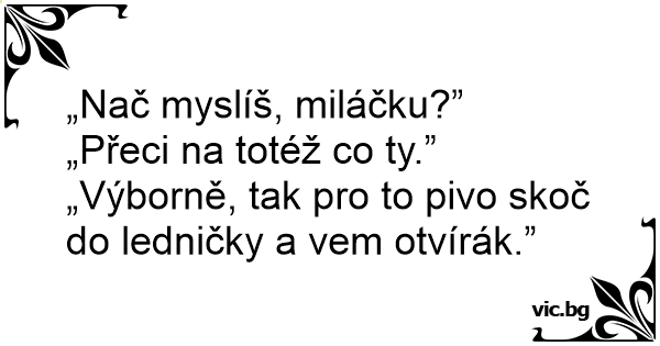 „Výborně, tak pro to pivo skoč do ledničky a vem otvírák.”
