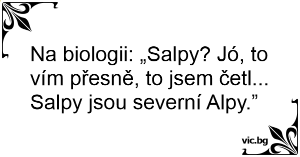 Na biologii: „Salpy? Jó, to vím přesně, to jsem četl... Salpy jsou severní Alpy.”