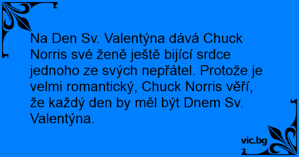 Na Den Sv. Valentýna dává Chuck Norris své ženě ještě bijící srdce jednoho ze svých nepřátel. Protože je velmi romantický, Chuck Norris věří, že každý den by měl být Dnem Sv. Valentýna.