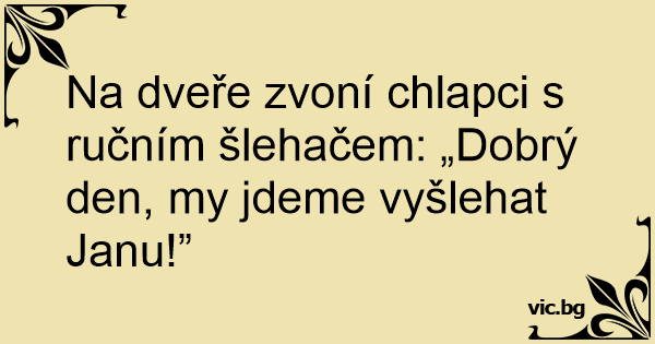Na dveře zvoní chlapci s ručním šlehačem: „Dobrý den, my jdeme vyšlehat Janu!”