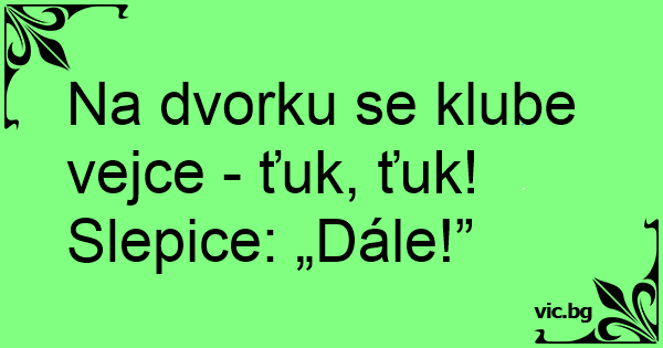 Na dvorku se klube vejce - ťuk, ťuk! Slepice: „Dále!”