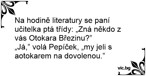 Na hodině literatury se paní učitelka ptá třídy: „Zná někdo z vás Otokara Březinu?”