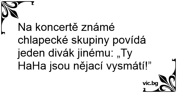 Na koncertě známé chlapecké skupiny povídá jeden divák jinému: „Ty HaHa jsou nějací vysmátí!”