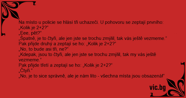 Pak přijde třetí a zeptají se hо: „Kolik je 2+2?”