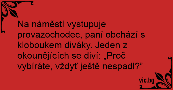 Na náměstí vystupuje provazochodec, paní obchází s kloboukem diváky. Jeden z okounějících se diví: „Proč vybíráte, vždyť ještě nespadl?”