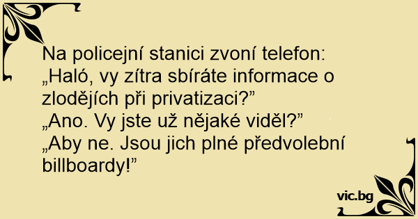 Na policejní stanici zvoní telefon: „Haló, vy zítra sbíráte informace o zlodějích při privatizaci?”