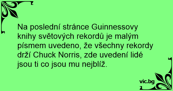 Na poslední stránce Guinnessovy knihy světových rekordů je malým písmem uvedeno, že všechny rekordy drží Chuck Norris, zde uvedení lidé jsou ti co jsou mu nejblíž.