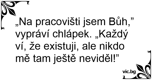 „Na pracovišti jsem Bůh,” vypráví chlápek. „Každý ví, že existuji, ale nikdo mě tam ještě neviděl!”