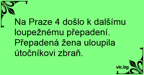 Na Praze 4 došlo k dalšímu loupežnému přepadení. Přepadená žena uloupila útočníkovi zbraň.