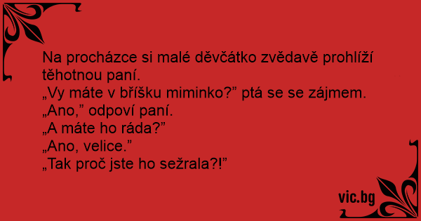 „Vy máte v bříšku miminko?” ptá se se zájmem.