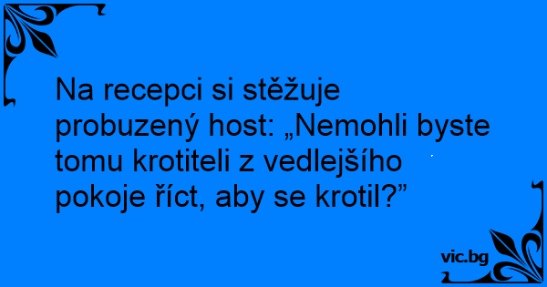 Na recepci si stěžuje probuzený host: „Nemohli byste tomu krotiteli z vedlejšího pokoje říct, aby se krotil?”