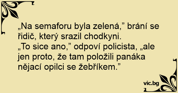 „To sice ano,” odpoví policista, „ale jen proto, že tam položili panáka nějací opilci se žebříkem.”