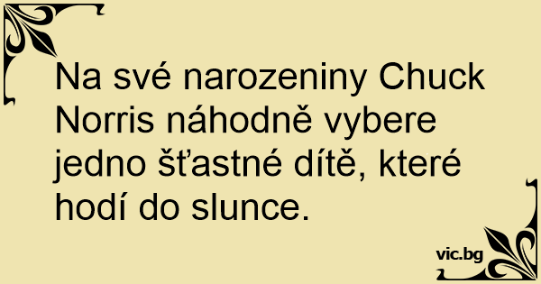 Na své narozeniny Chuck Norris náhodně vybere jedno šťastné dítě, které hodí do slunce.