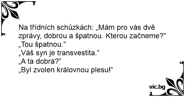 Na třídních schůzkách: „Mám pro vás dvě zprávy, dobrou a špatnou. Kterou začneme?”