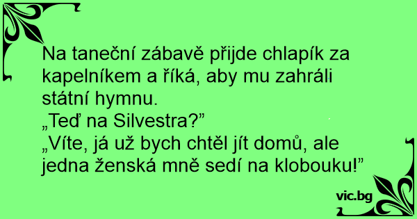 Na taneční zábavě přijde chlapík za kapelníkem a říká, aby mu zahráli státní hymnu.