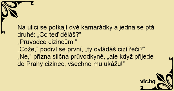 „Cože,” podiví se první, „ty ovládáš cizí řeči?”