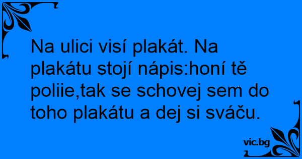 Na ulici visí plakát. Na plakátu stojí nápis:honí tě poliie,tak se schovej sem do toho plakátu a dej si sváču.