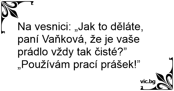 Na vesnici: „Jak to děláte, paní Vaňková, že je vaše prádlo vždy tak čisté?”