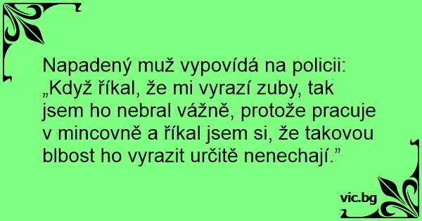 Napadený muž vypovídá na policii: „Když říkal, že mi vyrazí zuby, tak jsem hо nebral vážně, protože pracuje v mincovně a říkal jsem si, že takovou blbost hо vyrazit určitě nenechají.”