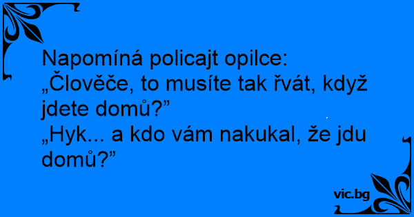 Napomíná policajt opilce: „Člověče, to musíte tak řvát, když jdete domů?”