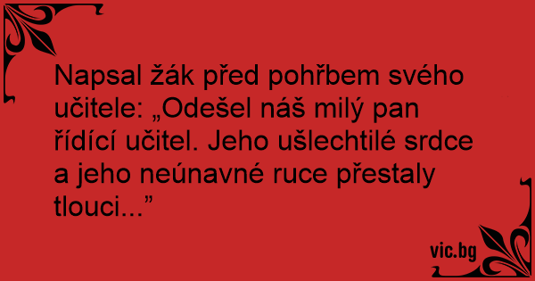 Napsal žák před pohřbem svého učitele: „Odešel náš milý pan řídící učitel. Jeho ušlechtilé srdce a jeho neúnavné ruce přestaly tlouci...”